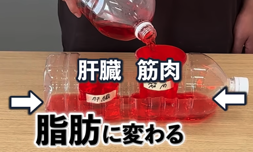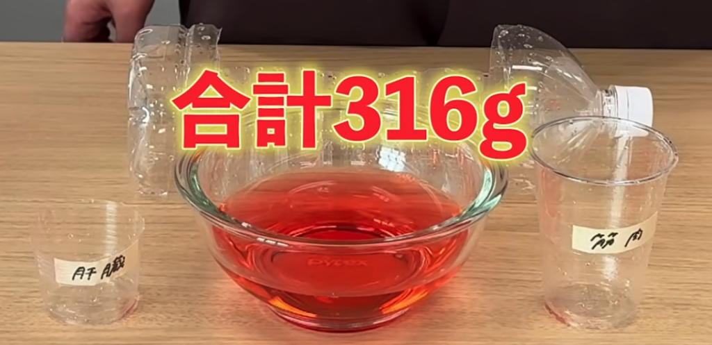 そしてこの赤い水が糖質です。